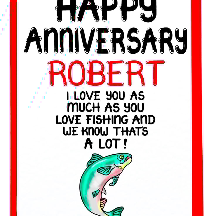 Personalised funny fishing anniversary card for husband, wife, partner, boyfriend, girlfriend