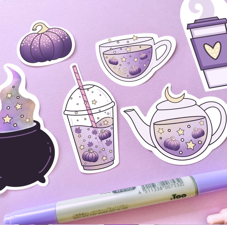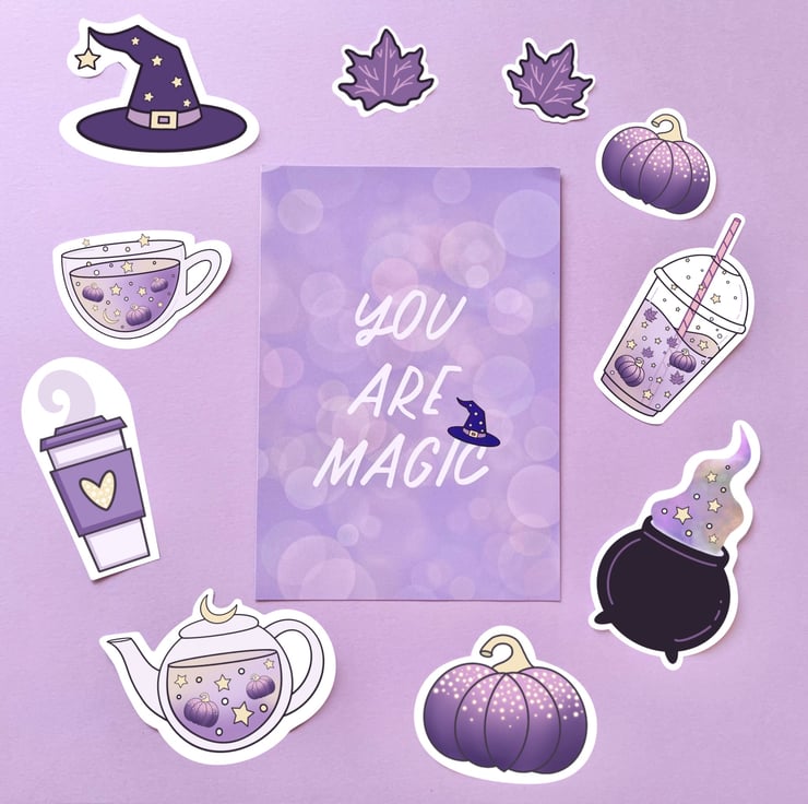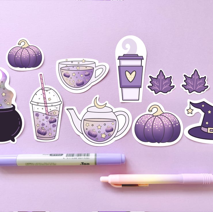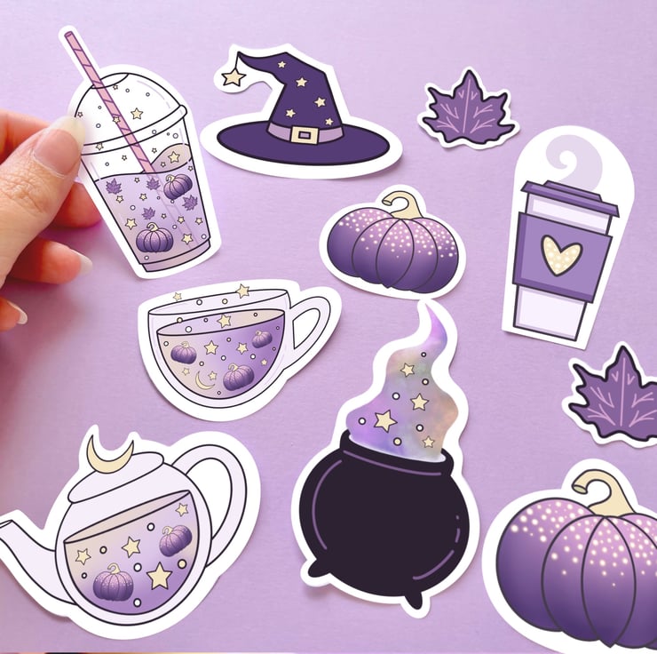 This Halloween sticker set has been hand drawn on the iPad by me using Procreate. The stickers have then been printed on to 100gsm glossy white photo sticker paper and then cut out using a Cricut machine. The stickers have been made by me in my little studio.
