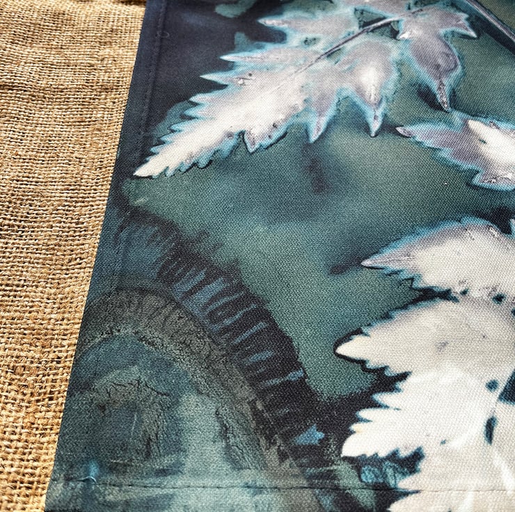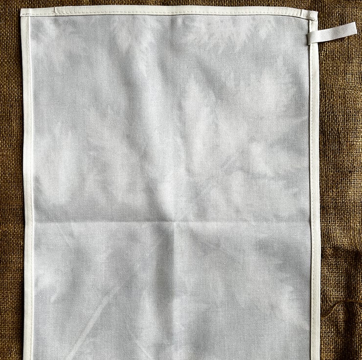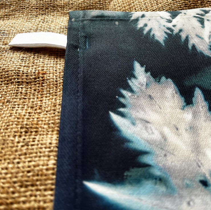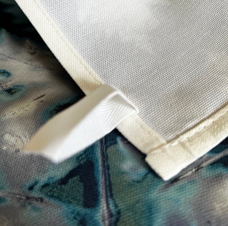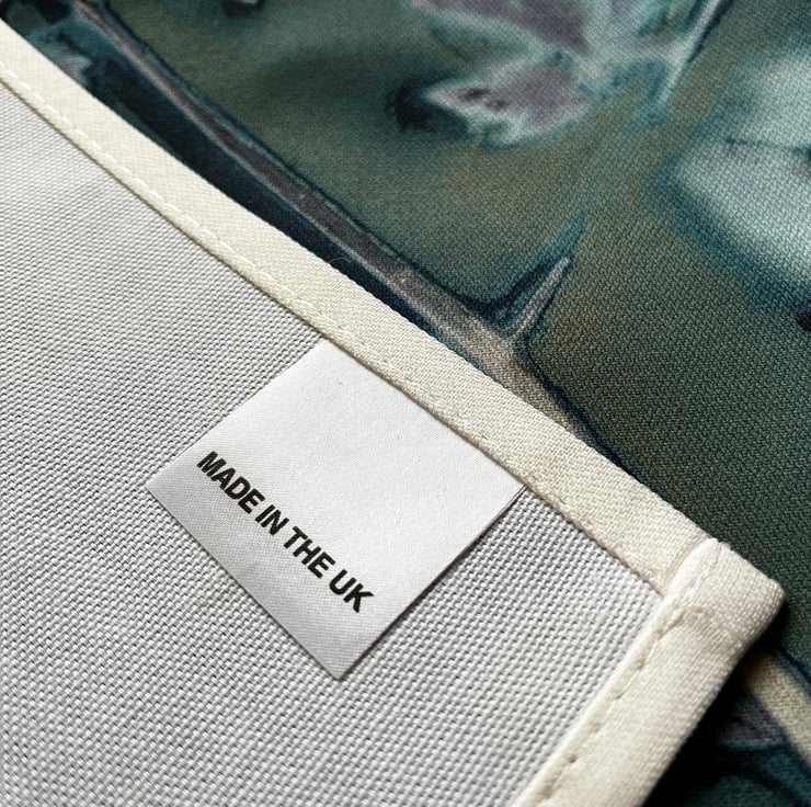 All four sides are hemmed and includes a "MADE IN THE UK" label and a fabric hanging loop.