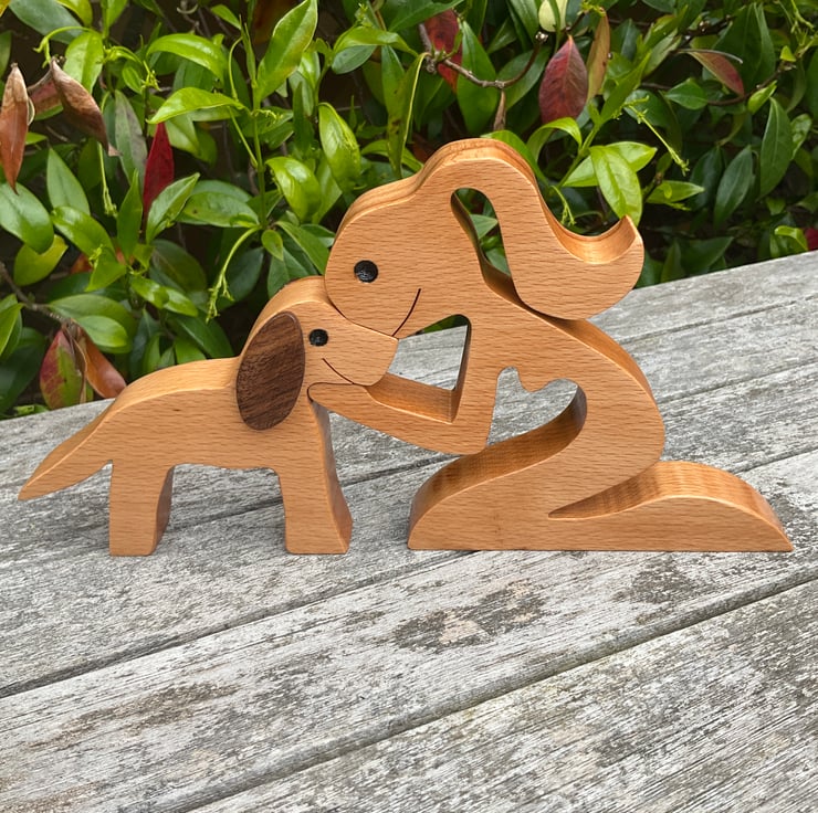 A cute wooden ornament of a woman and her favourite hound - makes a lovely gift for any dog lover.