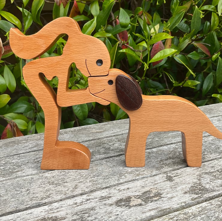 A cute wooden ornament of a woman and her favourite hound - makes a lovely gift for any dog lover.