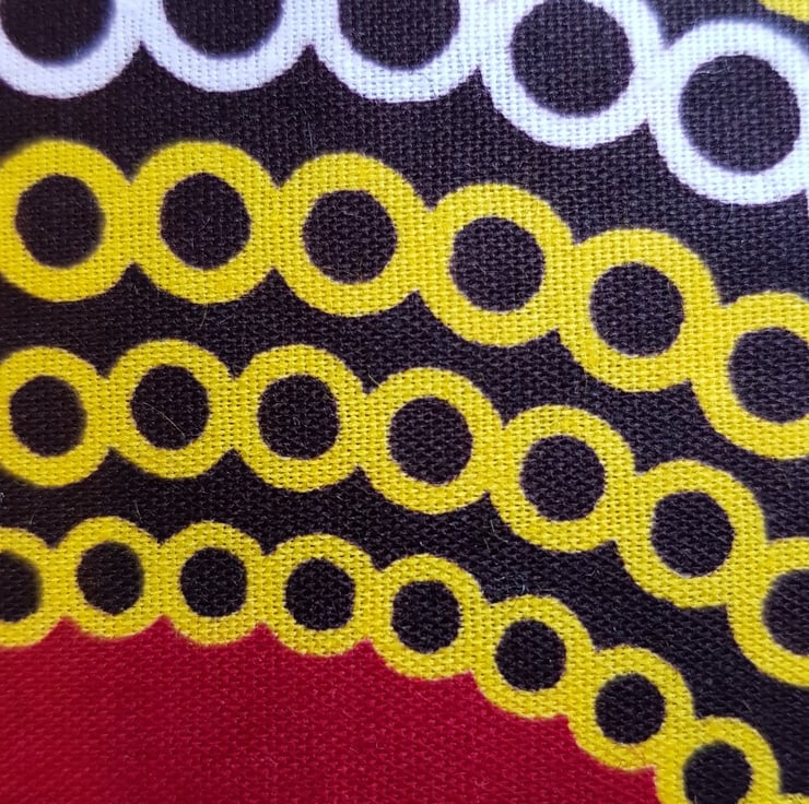 African fabric tote bag: red and yellow circles