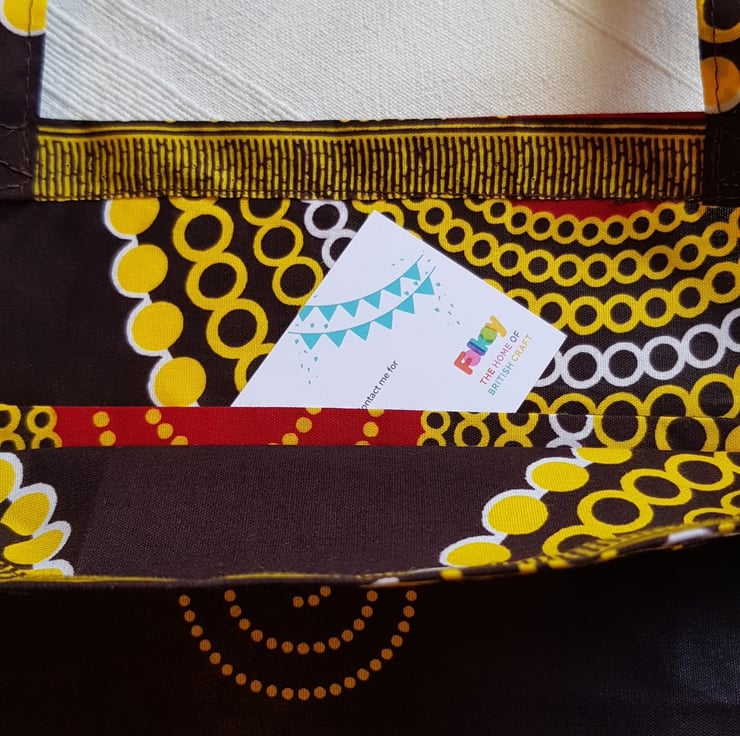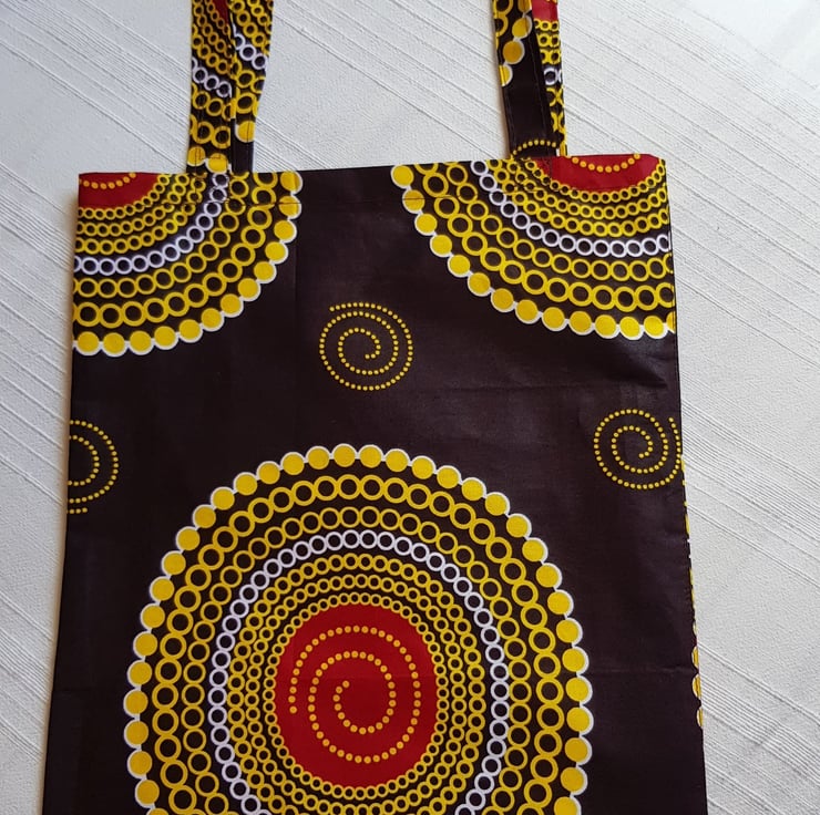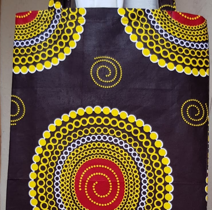 This striking African design cotton waxed fabric makes a great tote bag.