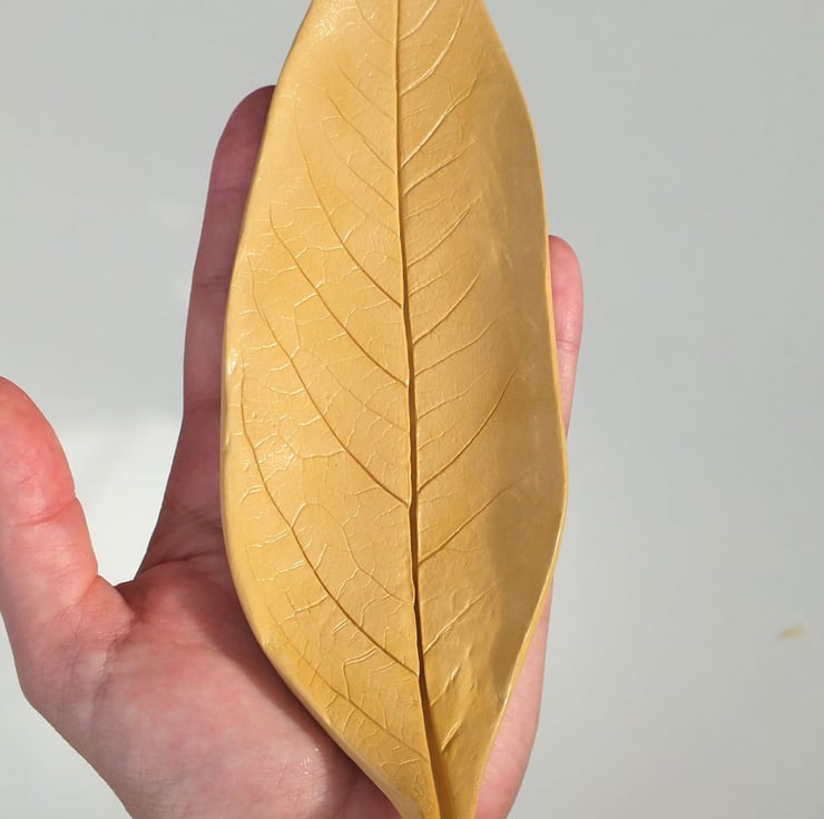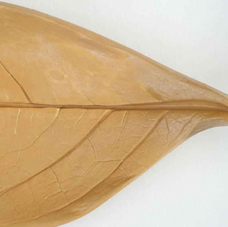 The leaf for this imprint was found in our garden and inspired me to create an Autumn clay dish.