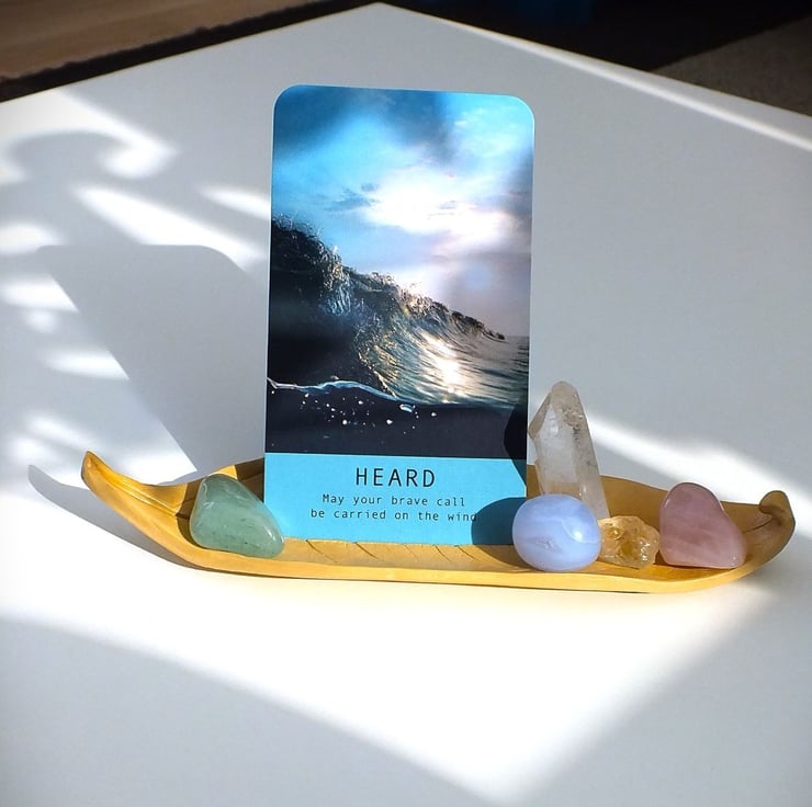 Golden brown decorative leaf dish suitable for gems/ crystals, jewellery, and keys.