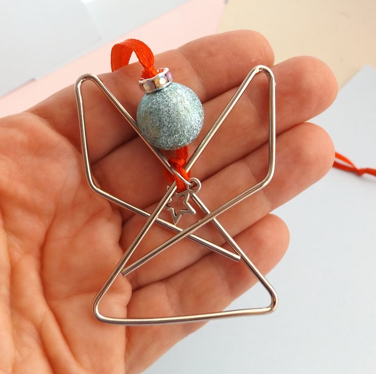 Dimensions: The finished decoration measured approximately 6.5cm in hight ( not including the length of the hanging ribbon) and 4.5cm in width.