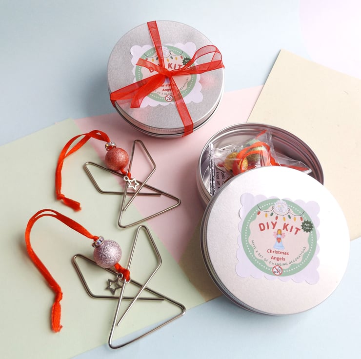 Christmas Angels Kit, Set of 2 DIY Angel decorations in tin box,