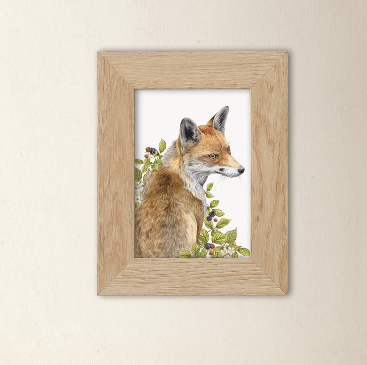 Red Fox art print for lovers of British wildlife and illustration. It is an A5 (148 x 210 mm or 5.8 x 8.3 inch) art print reproduced from my original watercolour illustrations of the local wildlife here in Scotland. Each one is printed on 316gsm white archival fine art paper using archival inks.