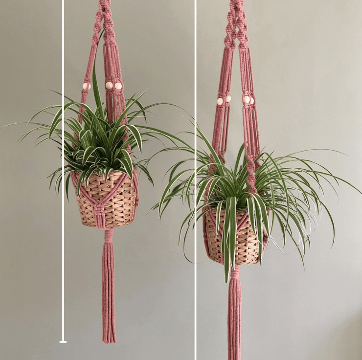 Measurements are approximate and taken from the top of the wooden ring to the bottom of the tassel. These will shorten slightly when your plant pot is added.