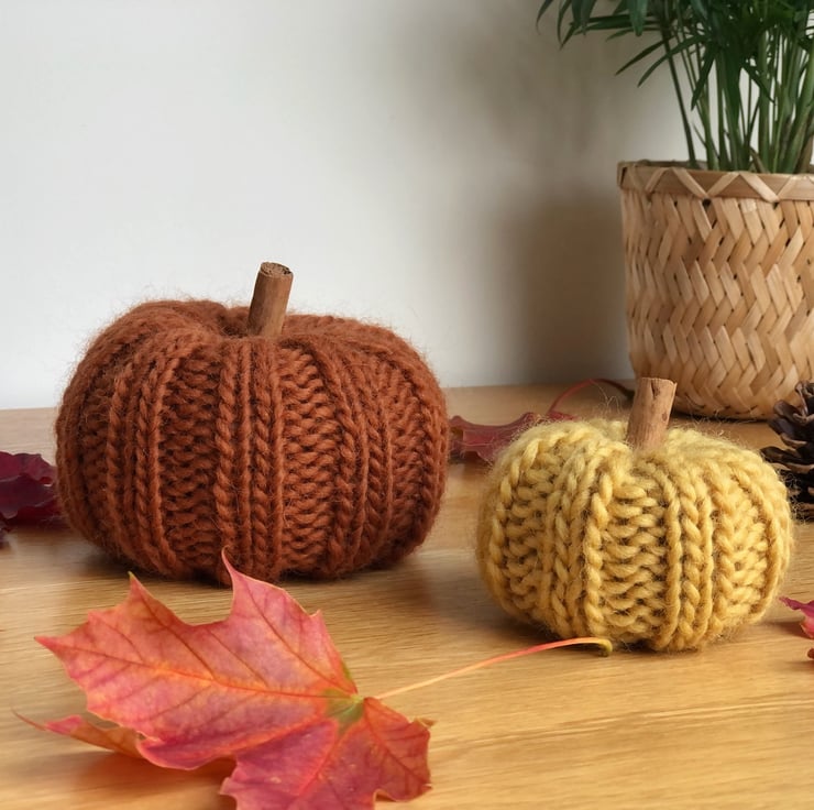 These adorable knitted pumpkins are handmade in 100% Pure British Wool and come in two sizes and a choice of three autumnal colours.