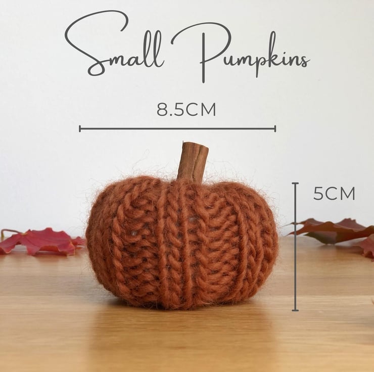 Each pumpkin is carefully hand-knit in a beautiful premium quality British wool – reared, sheared and spun in Yorkshire. The pumpkins are filled with 100% recycled cotton and a lovely, scented cinnamon stick is added as the stalk. All my items are handmade to order in my studio in Ashbourne, Derbyshire. For every order made - I also plant a tree!