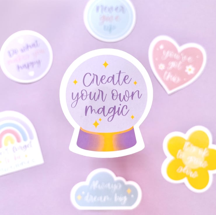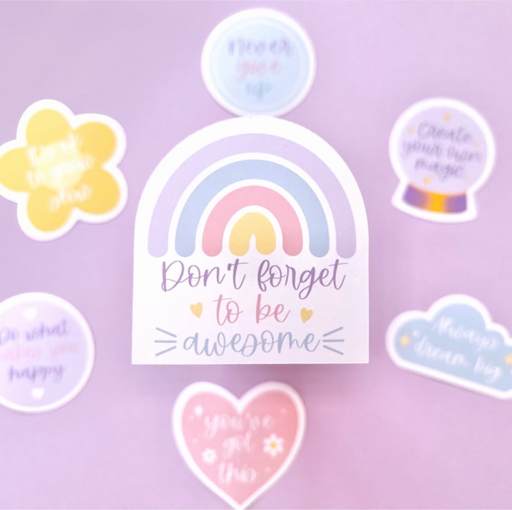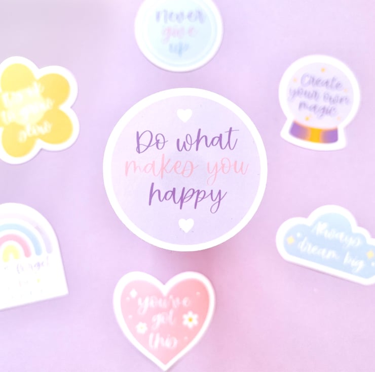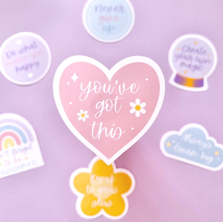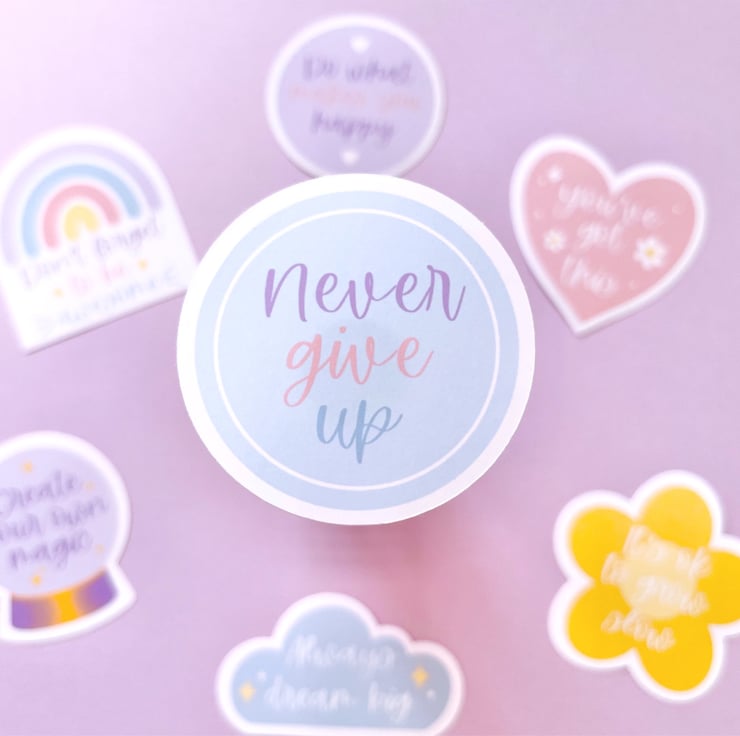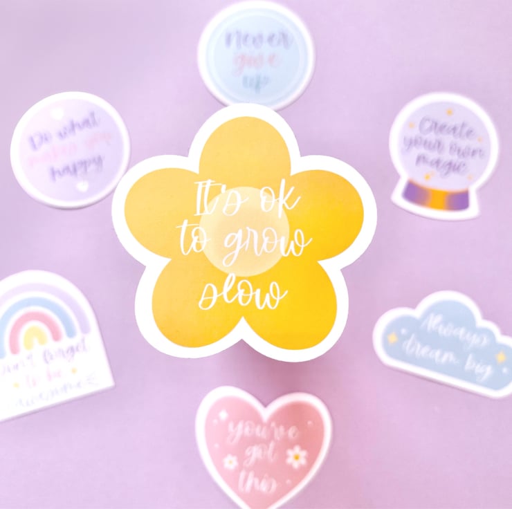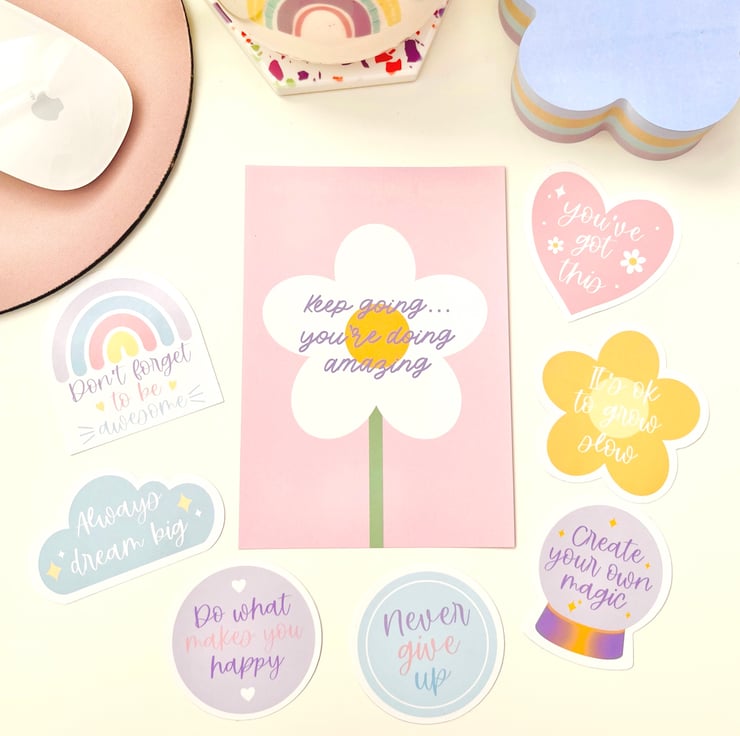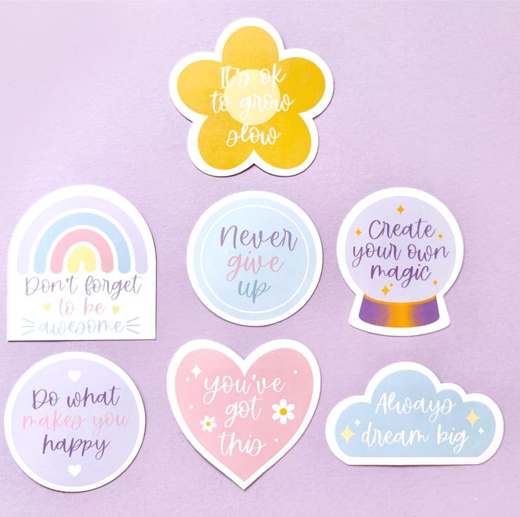 This motivational sticker set has been hand drawn on the iPad using Procreate. The stickers have then been printed on to 100gsm glossy white photo sticker paper and they are splash proof.