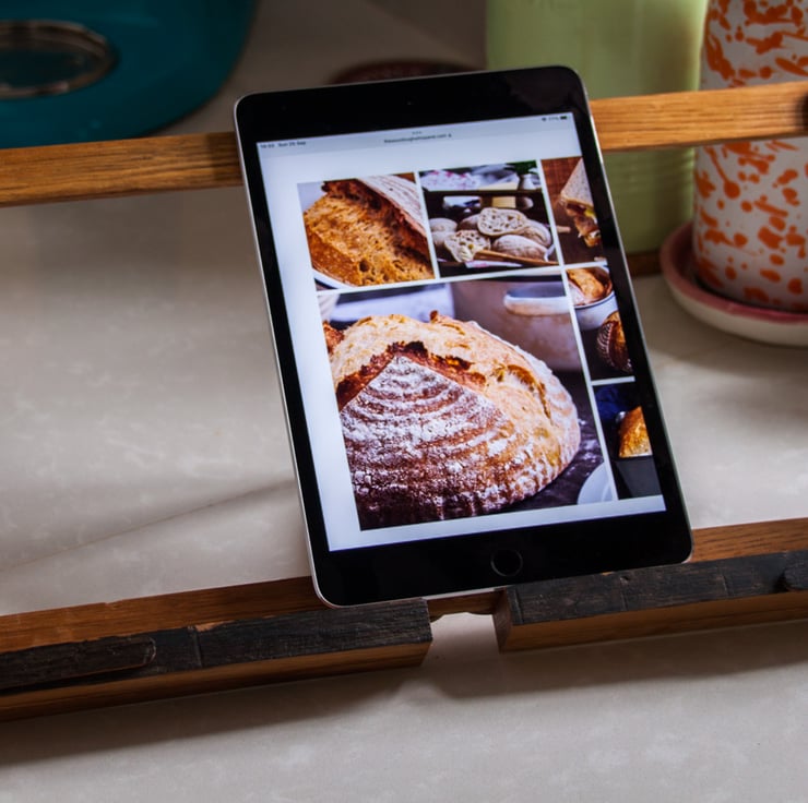 When in use it measures 380mm(15 inch) x 200(8inch) and can hold most types of recipe book as well as tablets and phones.