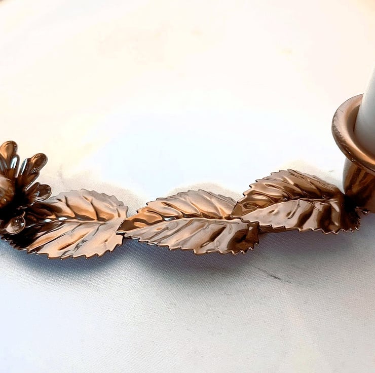 This is a true one-off handcrafted seasonal compliment to any home sideboard or dinner table as a centrepiece with its decorative leaves and flowers finished in our super high gloss gold there really wont be another like it.