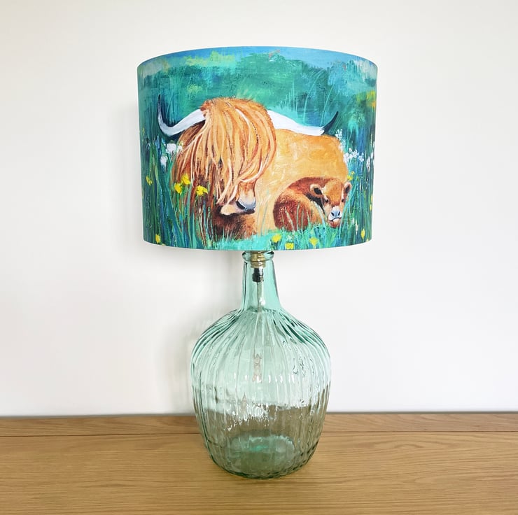 Handmade fabric covered drum lampshade using orginal artwork to create a beautiful unique design.