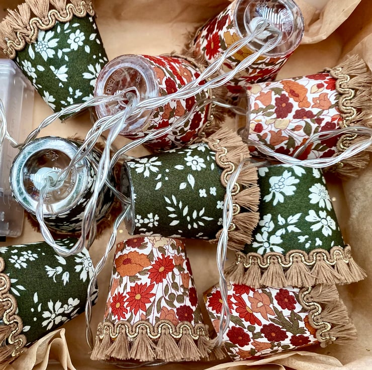 Upcycled Mini Lampshade Fairy Lights - Liberty - Autumn