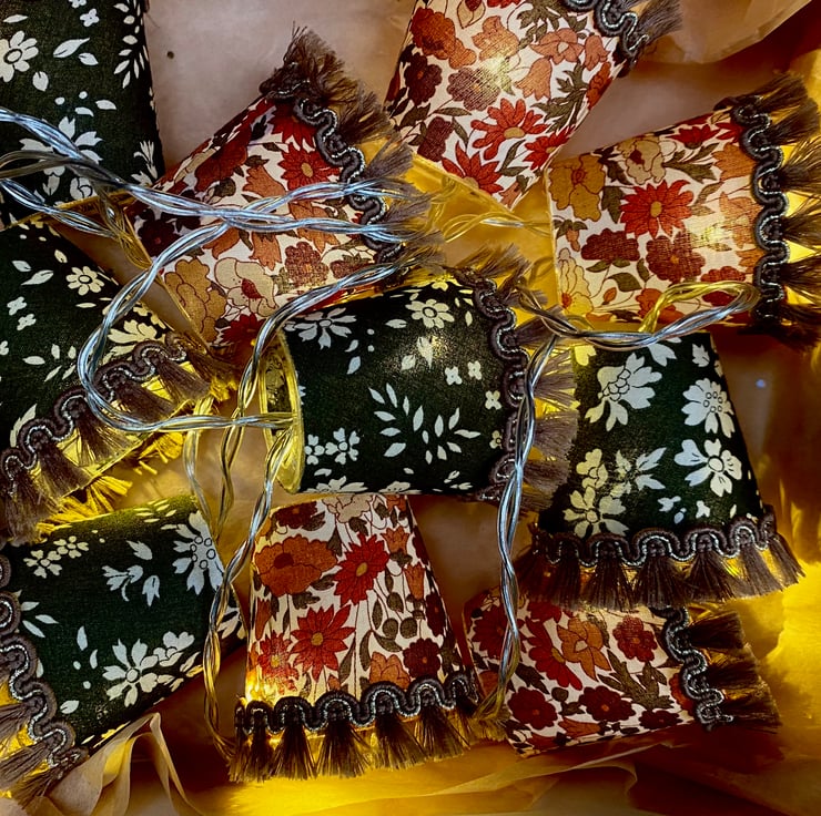 I also do custom lights to order, and I can even use your own special fabric, so please contact me if you would like a particular colour combination to fit with your decor, or have a specific fabric in mind. Just remember that these are mini lampshades, so the prints I use have to be mini too!