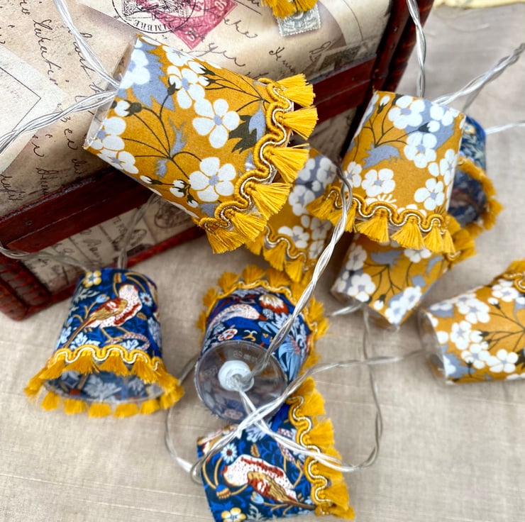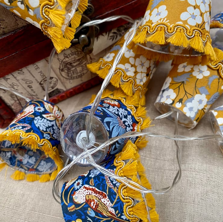 I also do custom lights to order, and I can even use your own special fabric, so please contact me if you would like a particular colour combination to fit with your decor, or have a specific fabric in mind. Just remember that these are mini lampshades, so the prints I use have to be mini too!