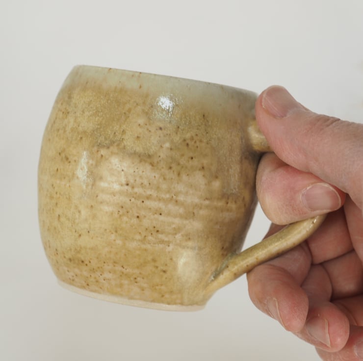 Both are finished in a toasty speckled oatmeal glaze, with transparent gloss inside the cup.