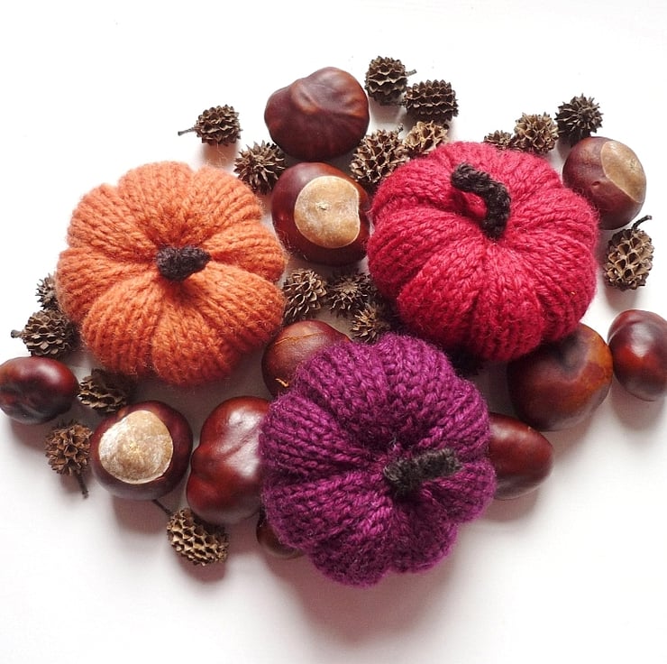 These knitted pumpkins in traditional colours have so many uses! You can display them on a shelf, fill a basket, add them to your wreath or scatter them on your tables.