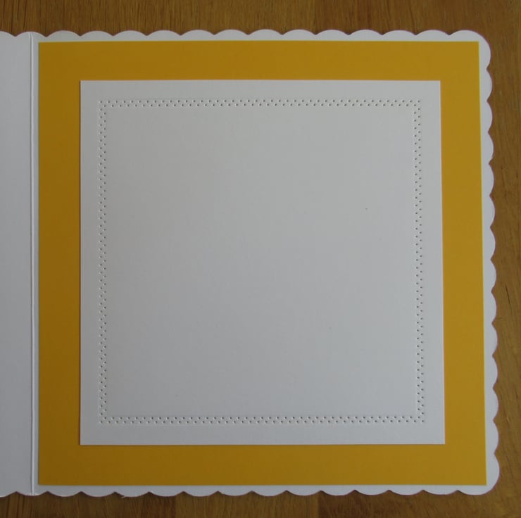This intricate die cut butterfly has been cut from white pearlescent card and placed upon 3 different yellow layers. The butterflies wings are not fixed so can be raised slightly. I added a white organza bow in one corner and a get well soon message in another.