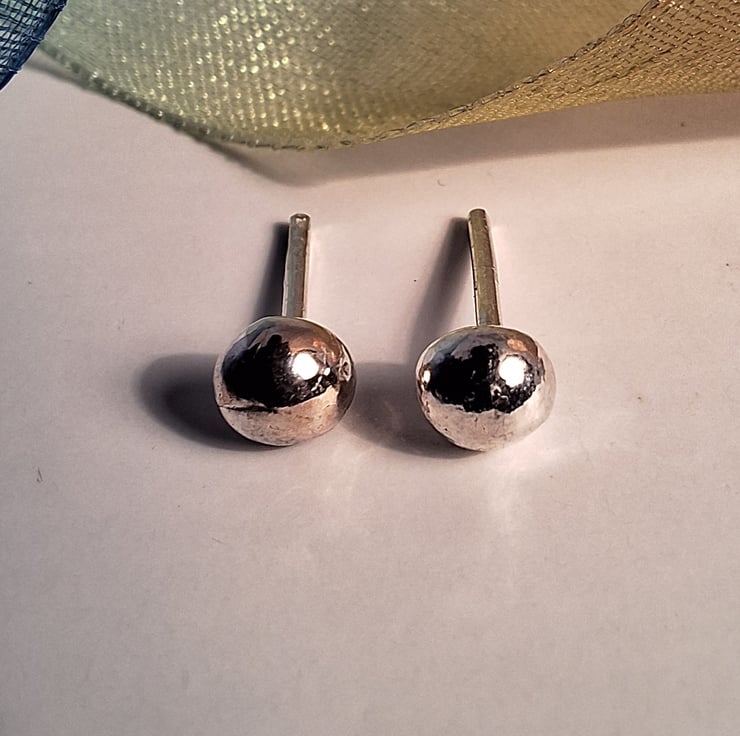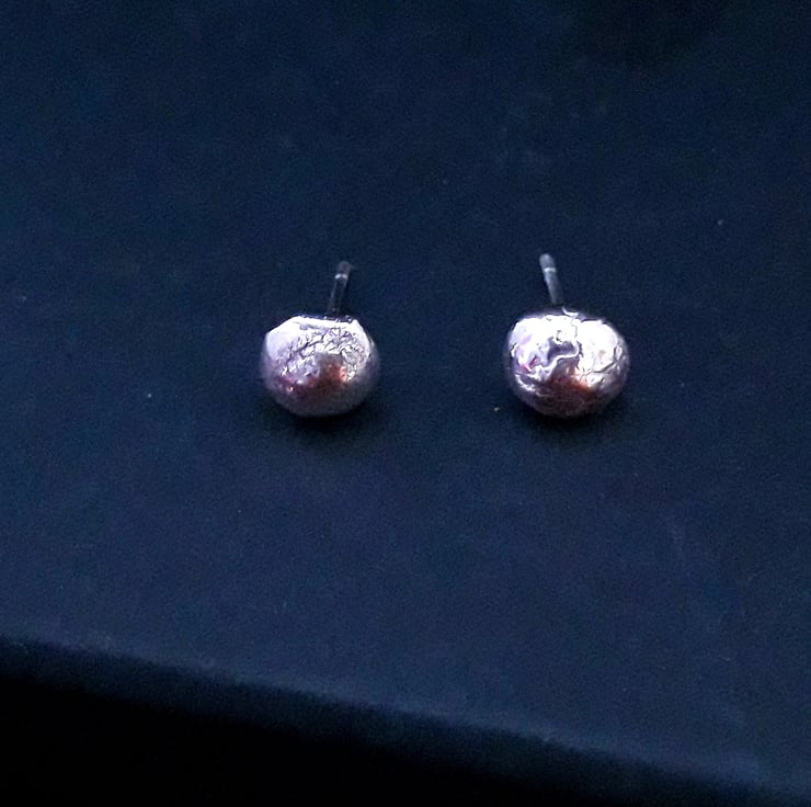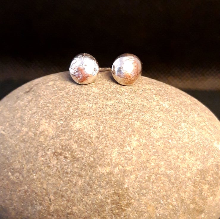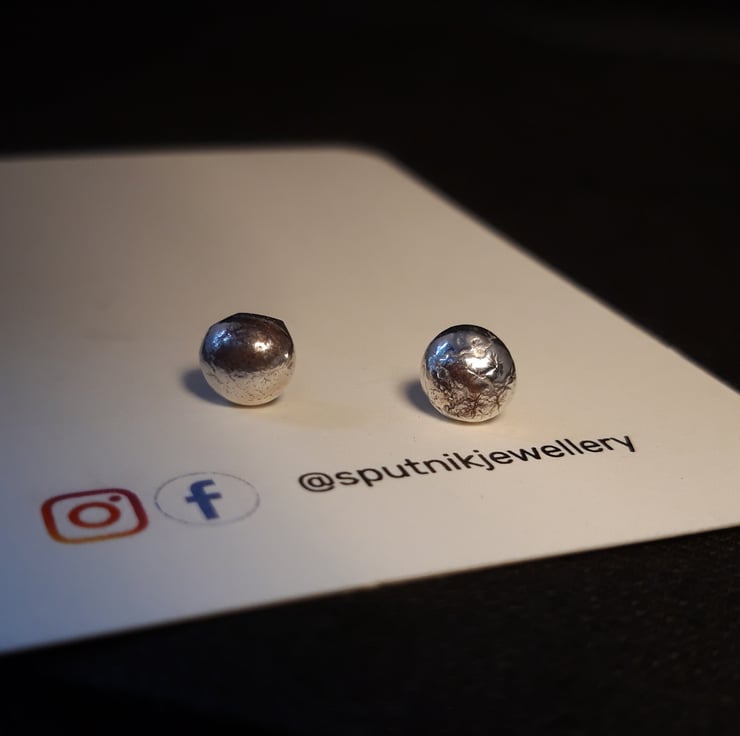 Lovely upcycled silver planet studs - round but with textured surfaces - approx 8mm across - due to the making process, each pair will be slightly different!
