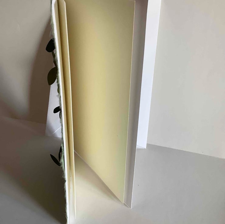 This is a handmade card which is blank for your own message. The card and envelope are white with an ivory insert.