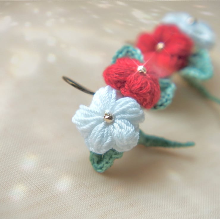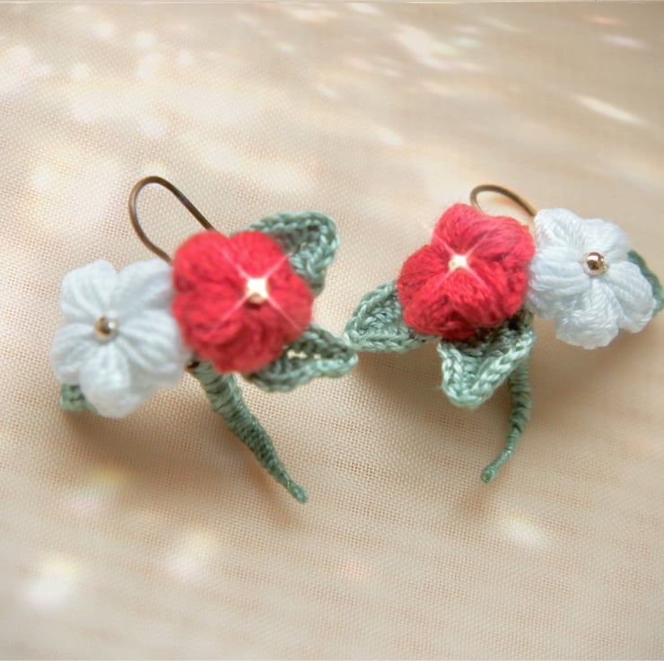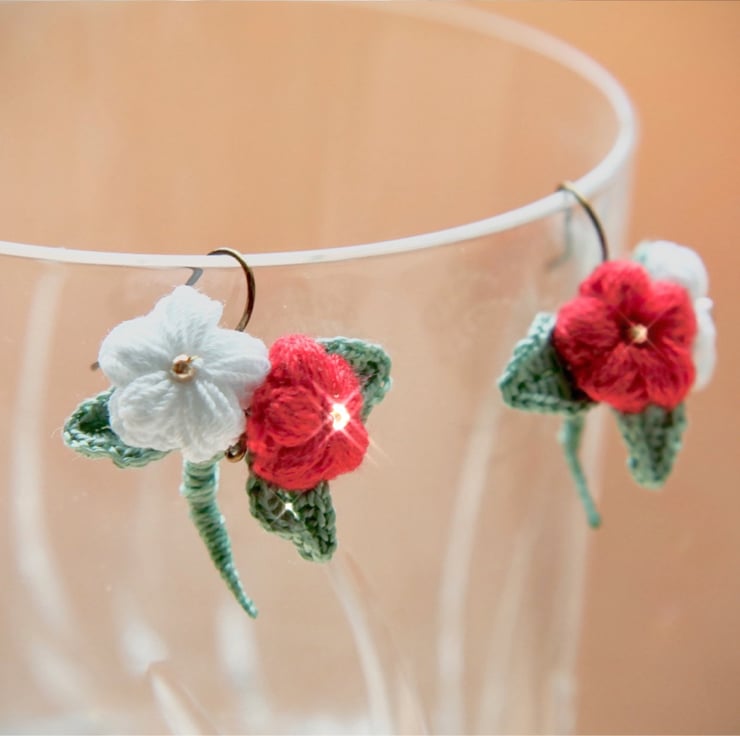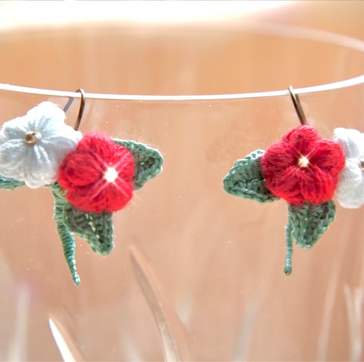 Microcrochet floral ear hooks made with Embroidery Threads and ear hooks