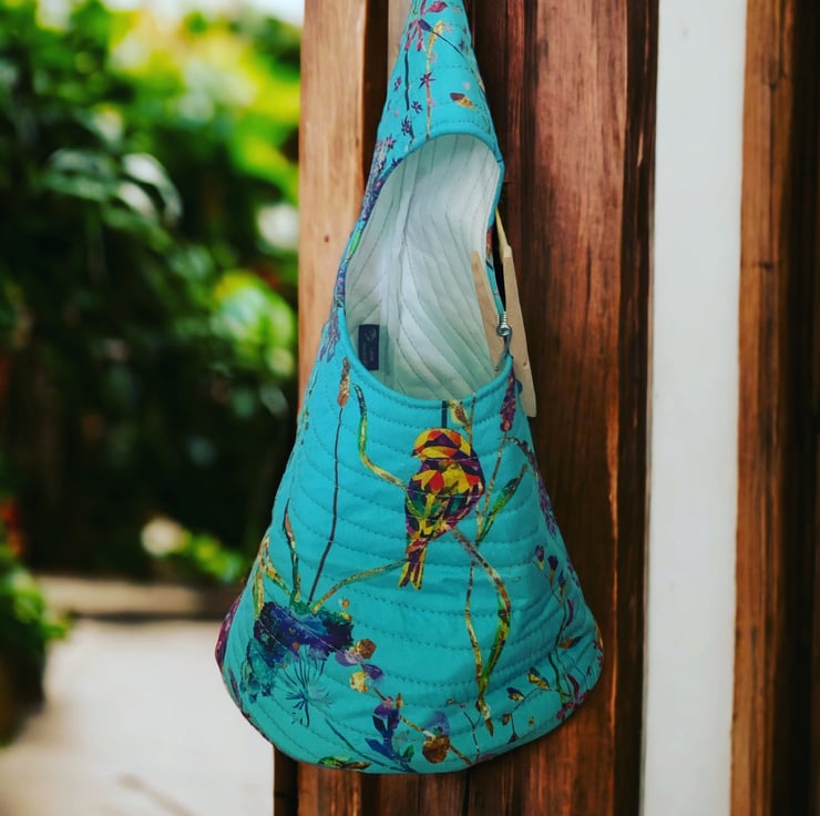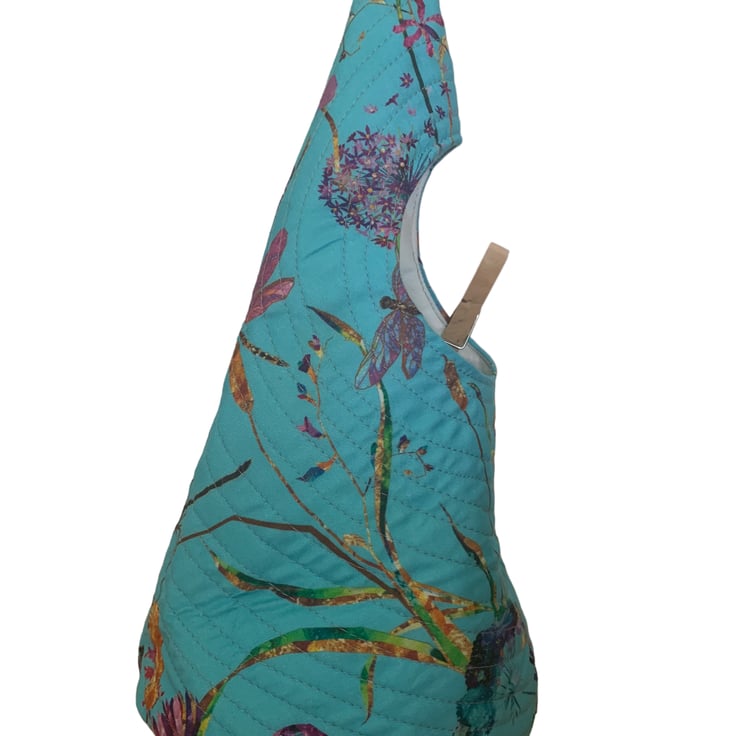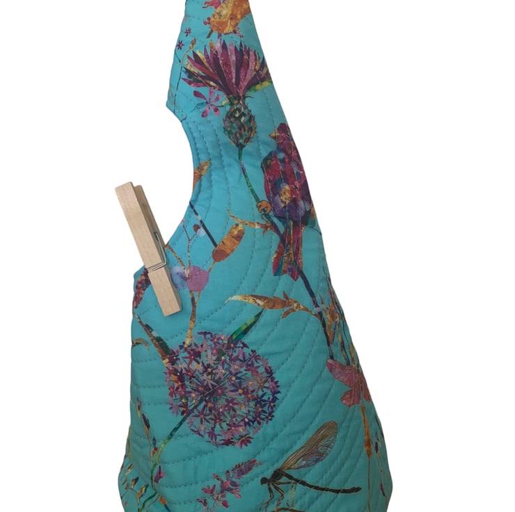 A peg bag with a difference. Fully quilted and comes with a carabiner clip to hook on your washing line or clip to a belt loop.