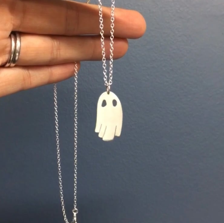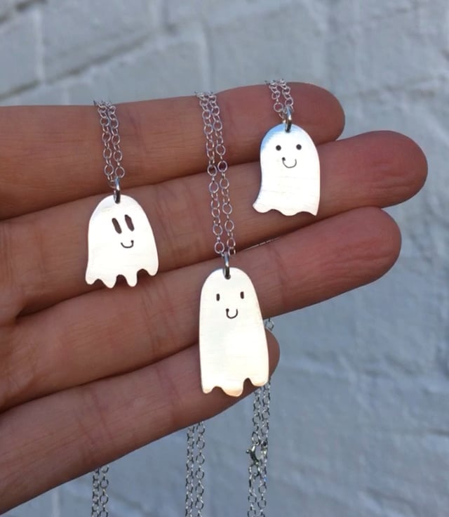 Pick a ghost, and I will carefully saw them out from eco silver to make your necklace. Eco silver is sterling silver that has been 100% recycled, so is a more sustainable, planet-friendly option.