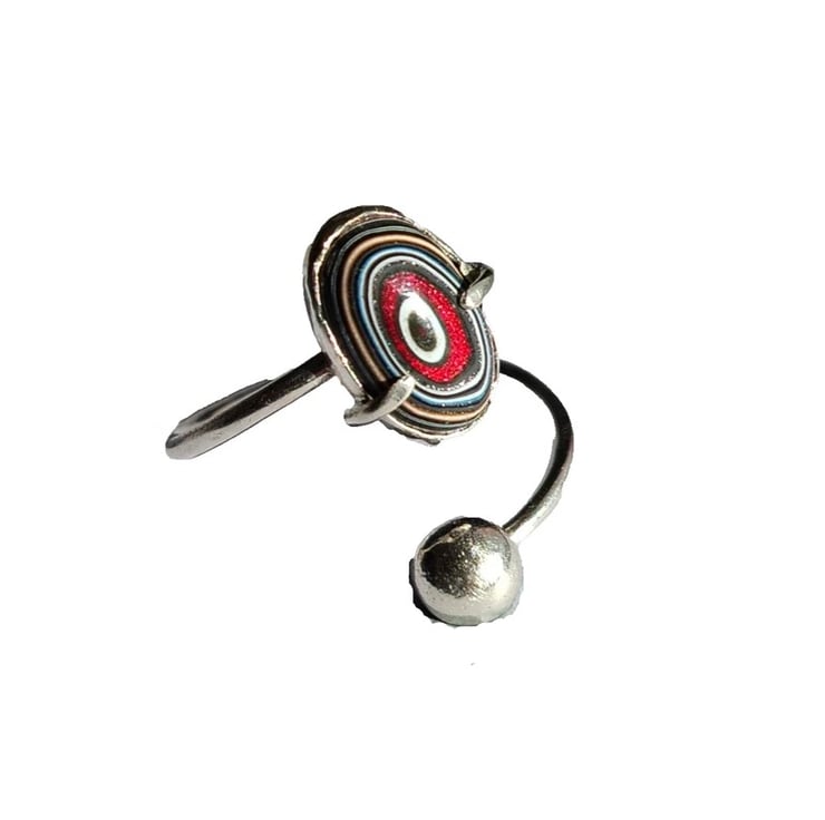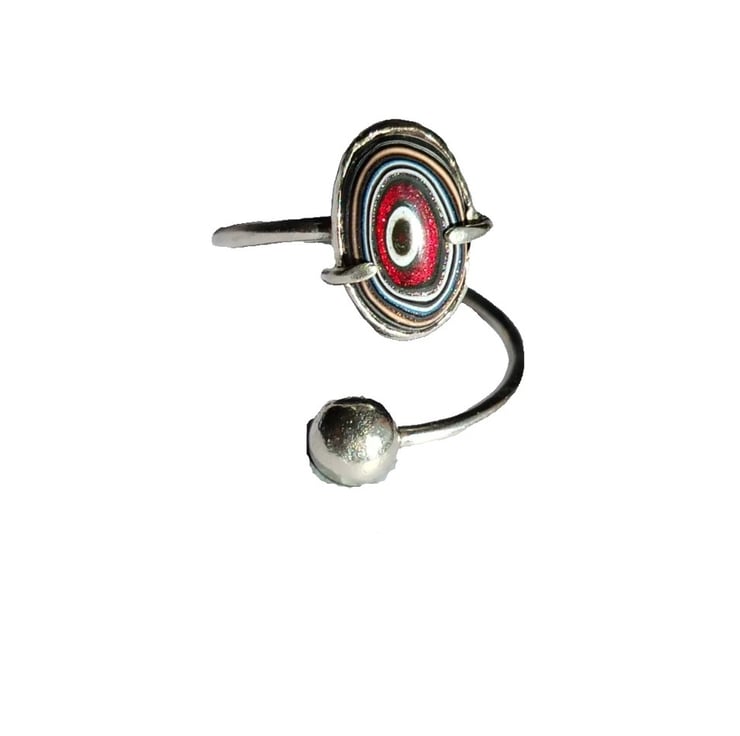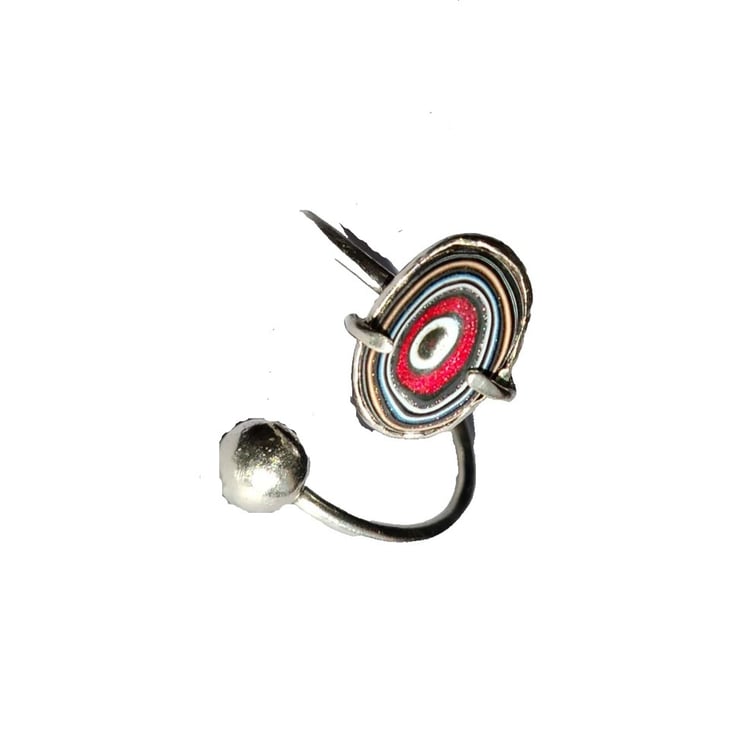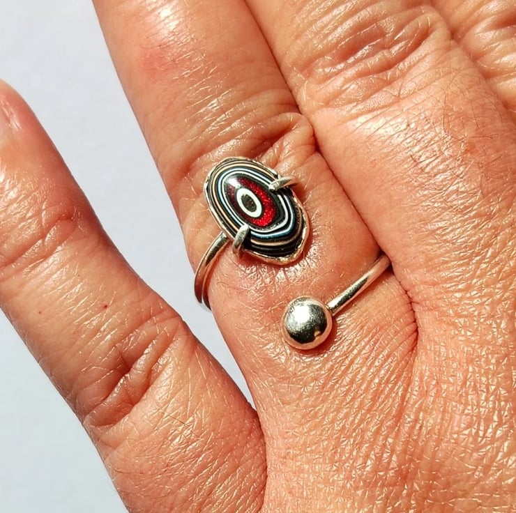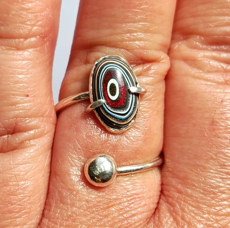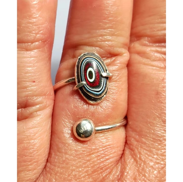 Handcrafted Adjustable Fordite ring made from recycled sterling silver 925