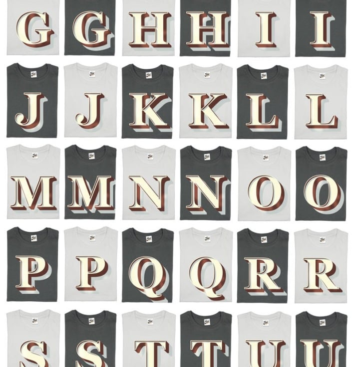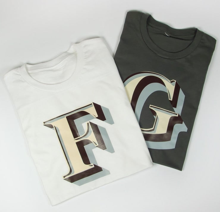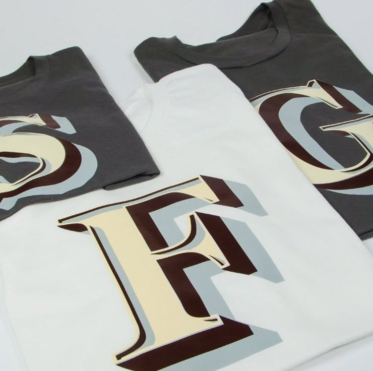 We produce T-shirts to order based on fonts we have created. The 'Stirling Shadow' font was initially created four years ago for a little boy...named Stirling, originally just the 'S' was designed but now the whole font is available to buy as Mens, Womens or kids T-Shirts in three colours. The letters themselves are cream, brown and grey and look pretty striking on these shirts.