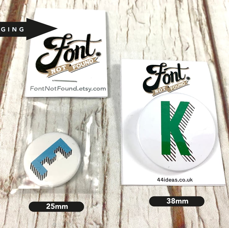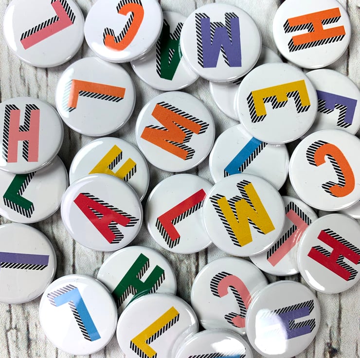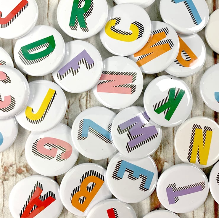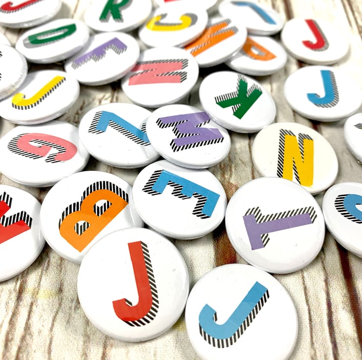 These are ourAlphabet button pin badges where you can choose any letter of the alphabet.