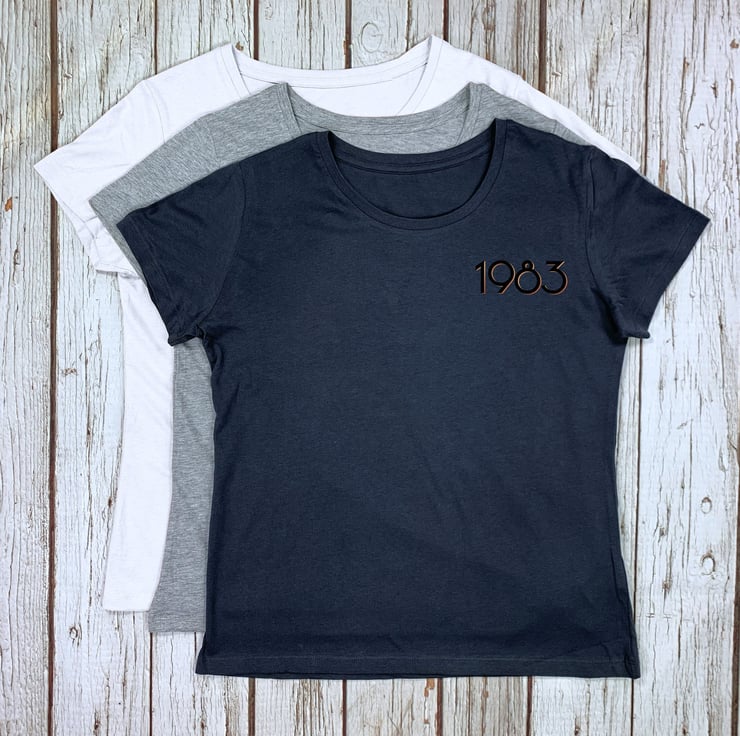 Organic Womens year T-Shirt- Choose your birth year. Ladies cut Shirt