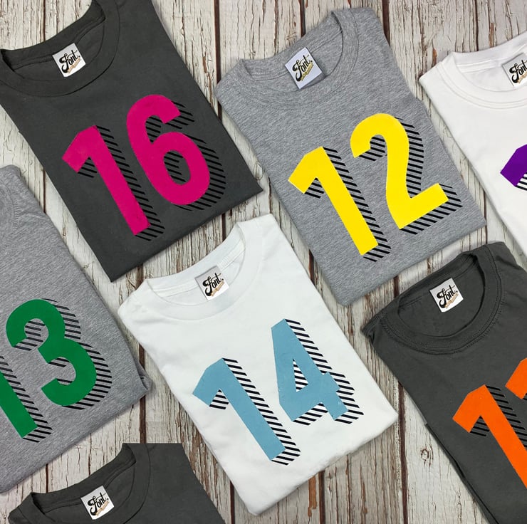 Teenagers Number T-Shirts. Personalise Kids' Birthday shirt. Children's Shirts