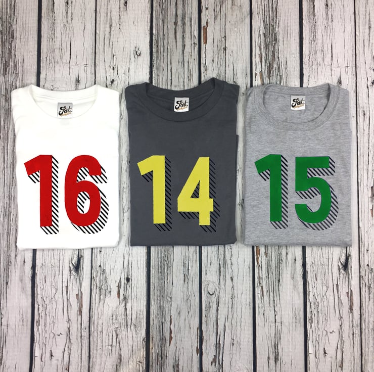 Teenagers Number T-Shirts. Personalise Kids' Birthday shirt. Children's Shirts
