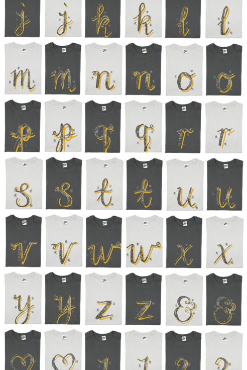 This white stocking features our Monroe font in gold glitter, simple glitz for Christmas magic! Check out the full alphabet to see how the letter shape will look (our Monroe T-shirts features two colours). Pick your choice of letter, number or heart symbol...
