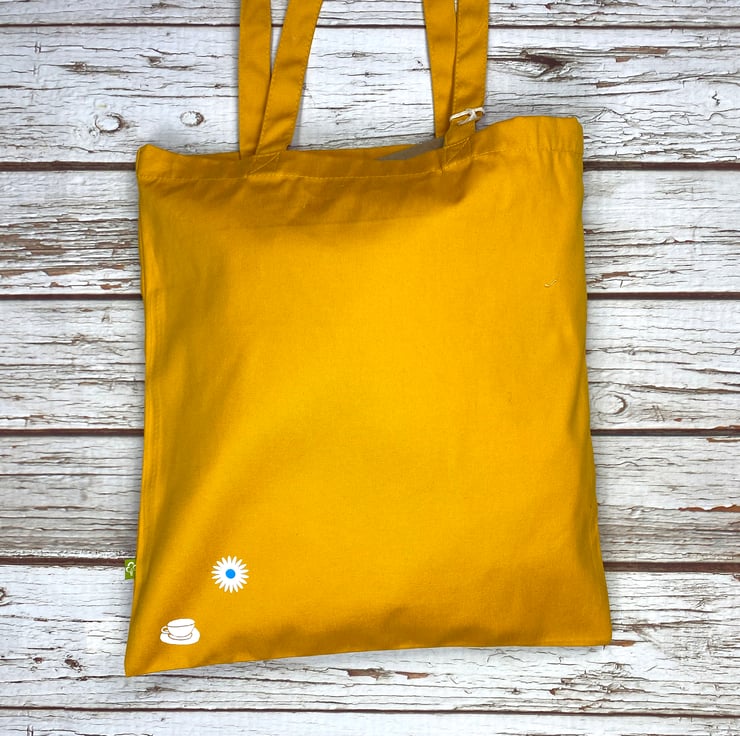 Mustard Yellow Daisy Organic Cotton bag for life. Flower shopper. Thick Floral