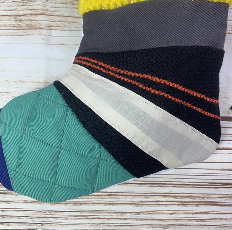 Bright Handmade Christmas Stocking- patchwork, cosy quilted, punch hook! Luxury