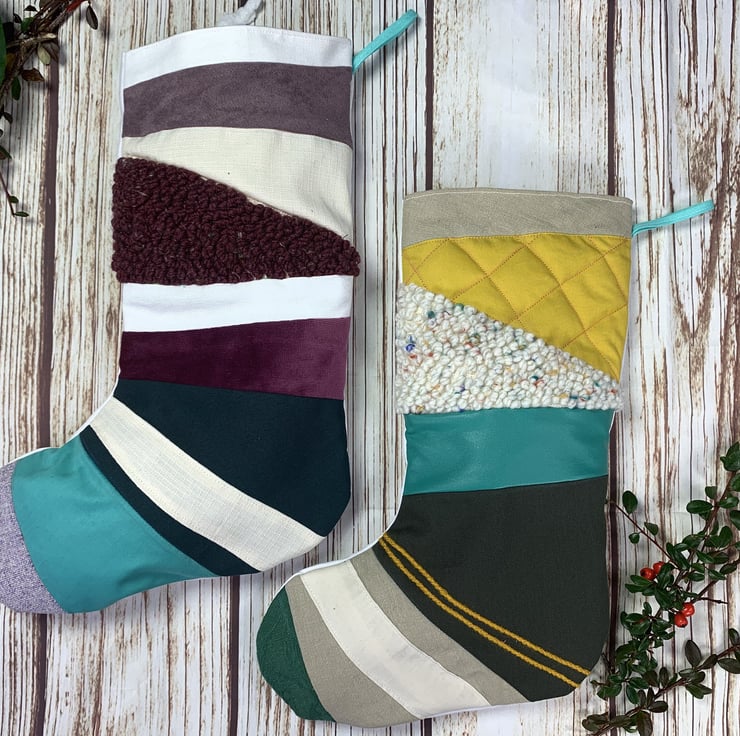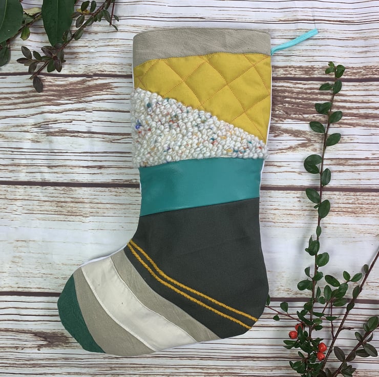 This is my regular sized Christmas Stocking assembled by myself using a special selection of fabrics that have been waiting to be used for many many years!