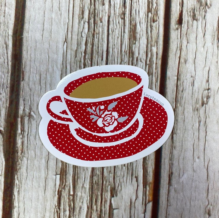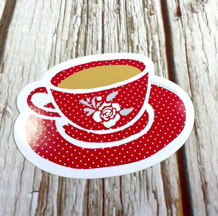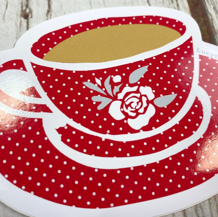 Red shaped Teacup Vinyl Sticker 10cm by 7cm
