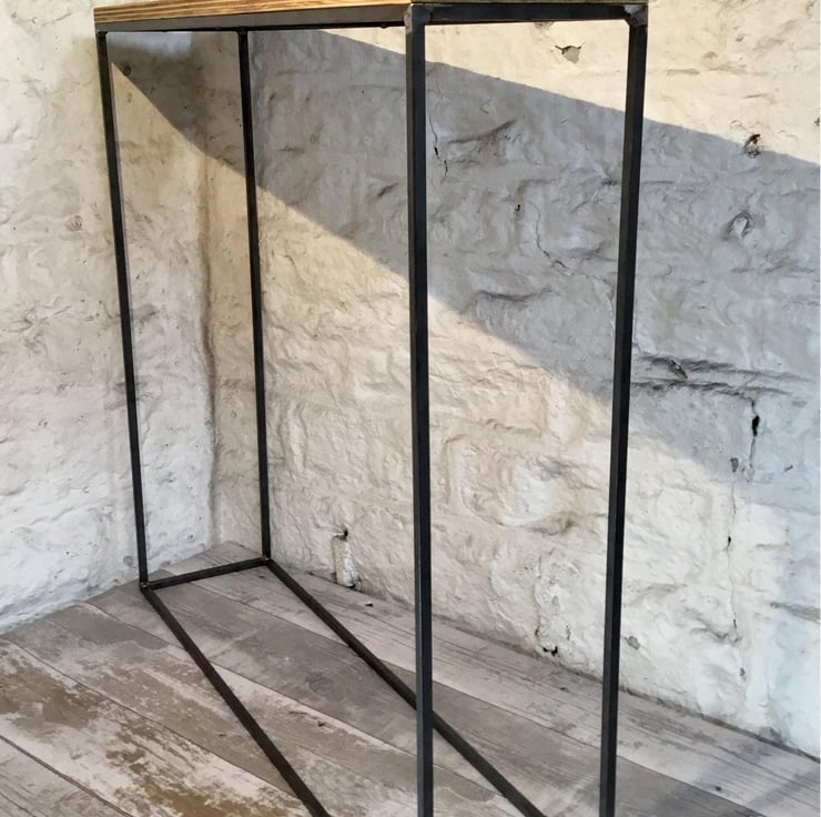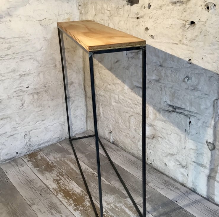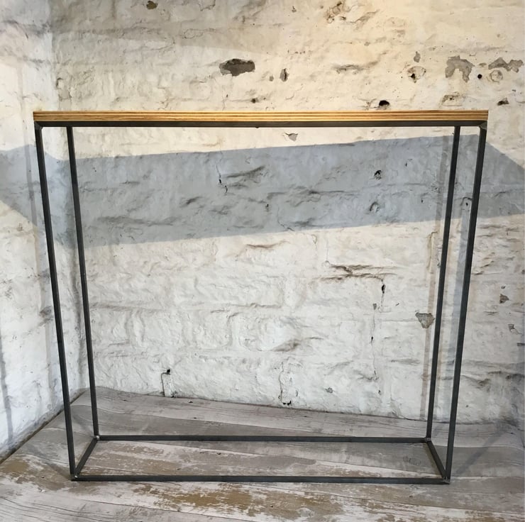 Table is constructed from 10mm square solid steel bar narrow material for a minimal industrial style look with a 18mm ply wood top, raw steel and wood top are clear lacquered to prevent rust and seal. Can be done most colours or stains for top please ask any variation can be catered for. No assembly required despatched as completed item.