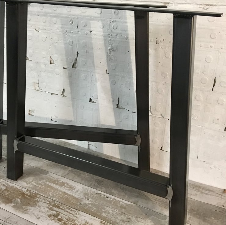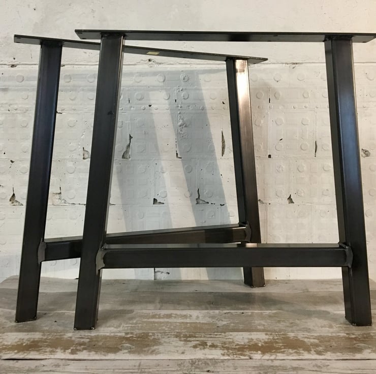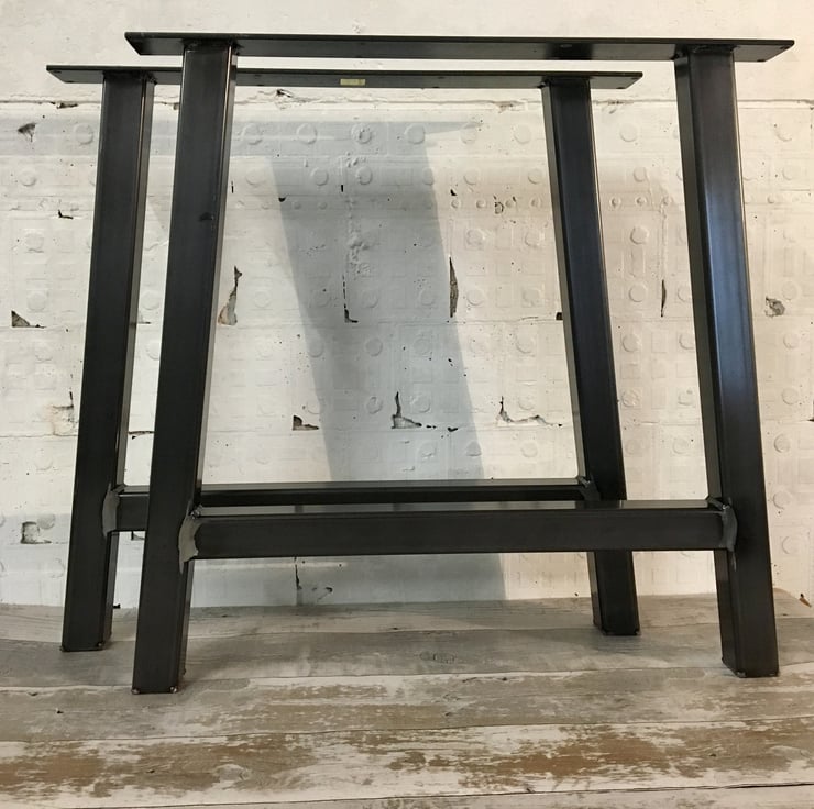 Pair of industrial style table legs made from 50x50mm heavy raw steel box section with a 70mm top rail with 8 pre drilled countersunk holes so can be fitted to various table tops as required looks great with scaffold plank top also more traditional style too. Could be used in home, cafe, bar, garden, patio etc to make a real stand out piece of industrial chic. (Also have bench seat legs to suit table please ask or see other items new items added regular)