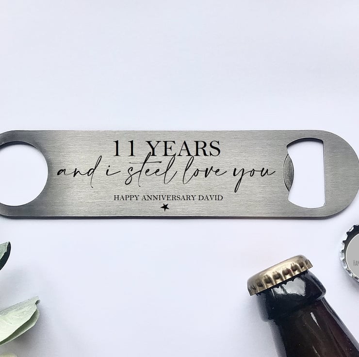 11 years & i steel love you, metal bottle opener, anniversary gift for him,
