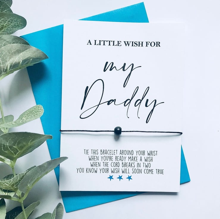 This cute little black wooden bead wish bracelet comes on a 1mm blackwax cord which is attached to an A6 size piece of card