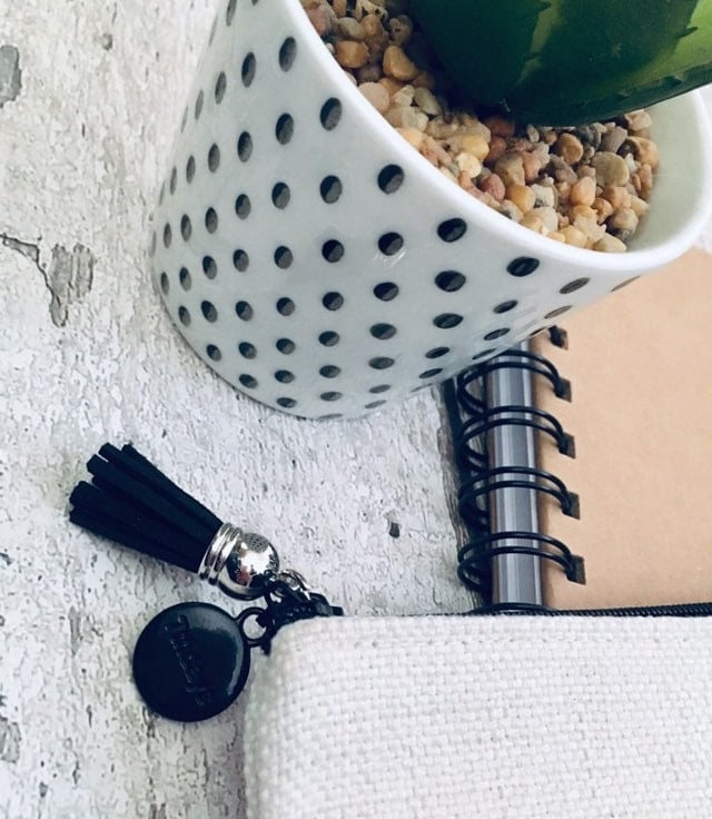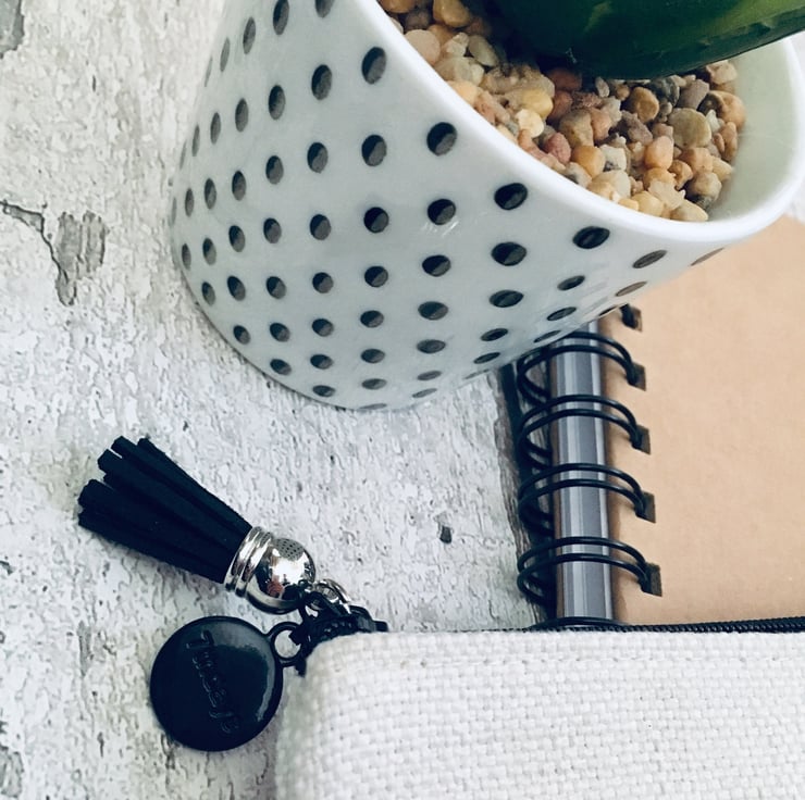Lovely thick Linen pencil case with black zip and tassel.