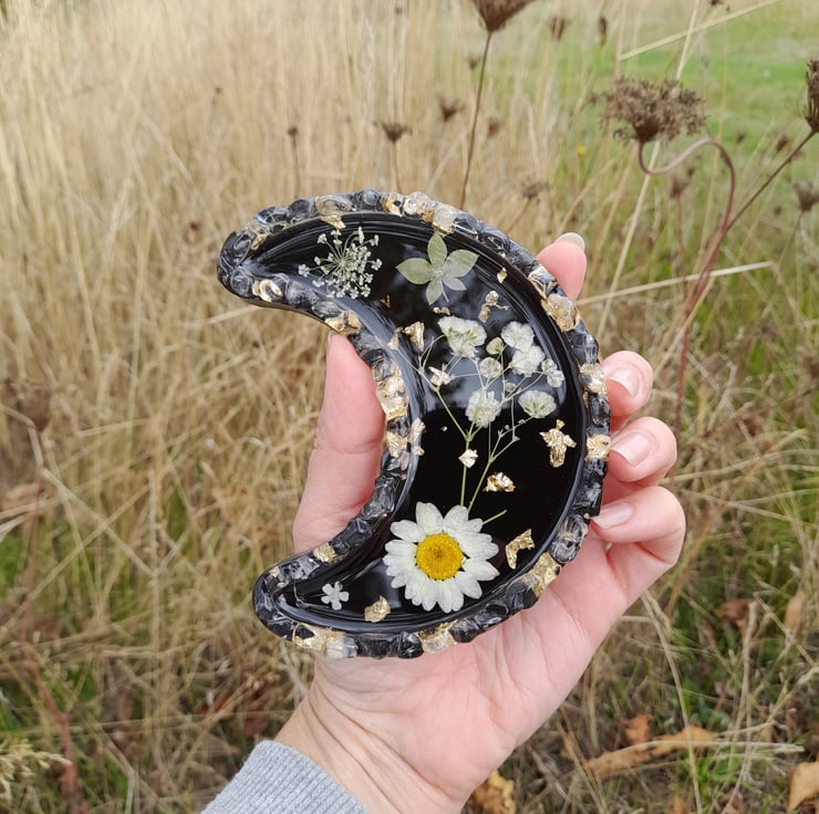 A beautiful moon shaped trinket tray is the perfect way to display your special items.