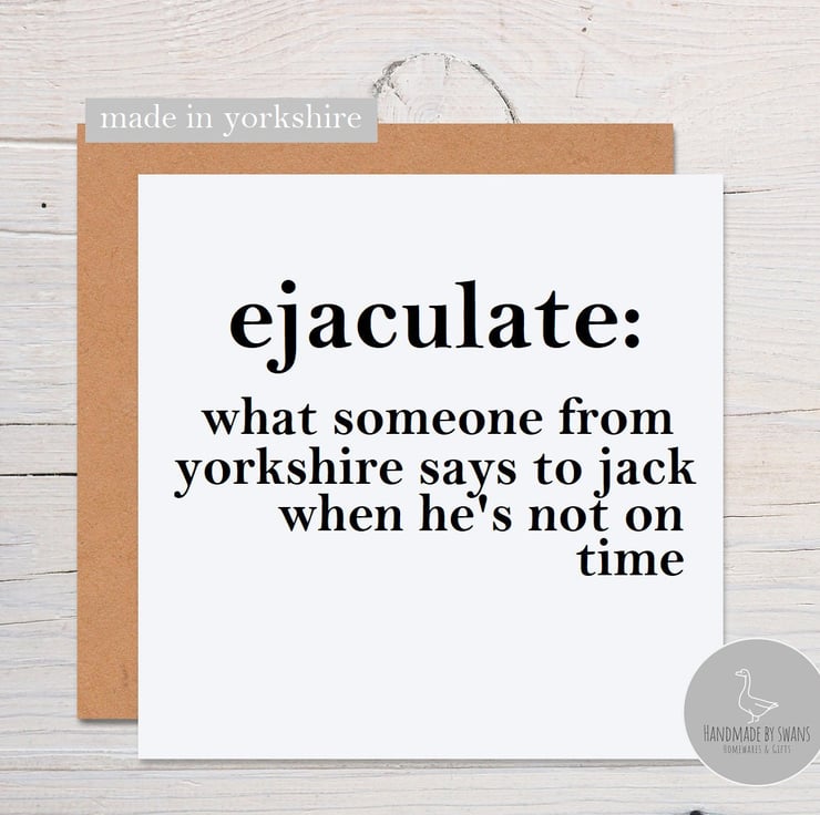 EJACULATE. what someone from yorkshire says to jack when he's not on time rude greeting card