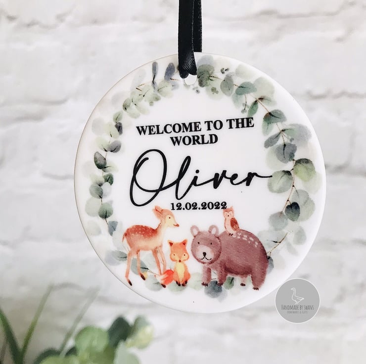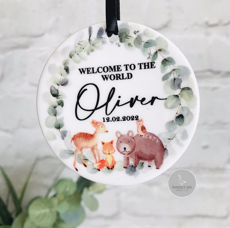 A lovely personalised Welcome to the world ceramic ornament