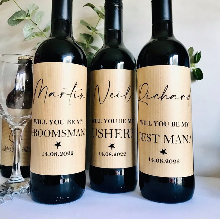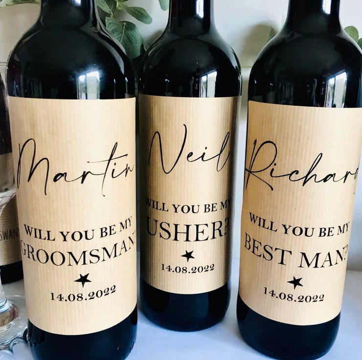 Personalised Will you be my Best man, Usher, Groomsman Replacement Wine bottle label - just add wine!